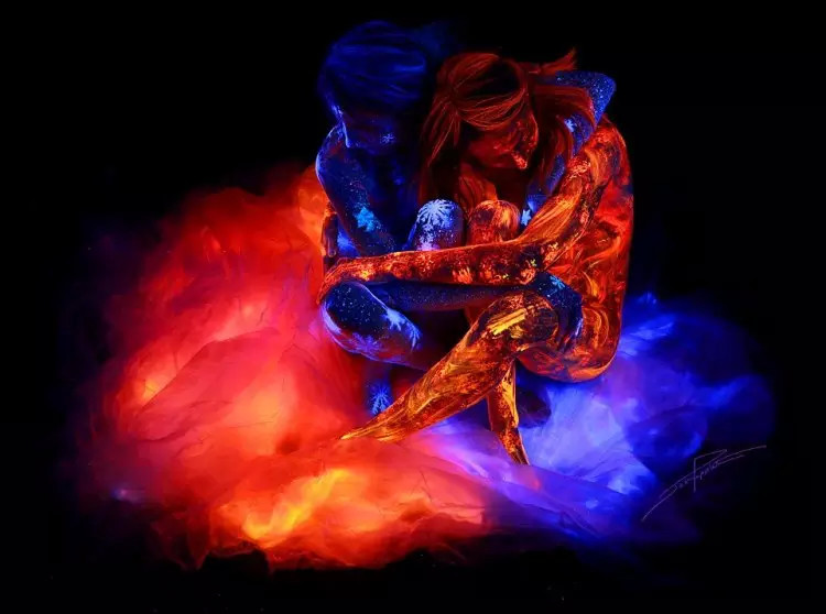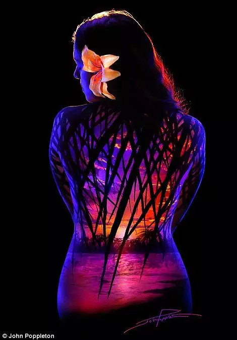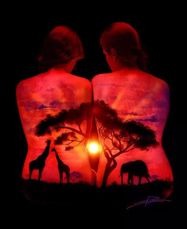 他在追求艺术的真实,而黑光和紫外线颜料帮他做到了。他在创作这幅“草原日落”时谈到,“我可以用颜料画出日落,但黑光却能让她成为了真正的日落。”