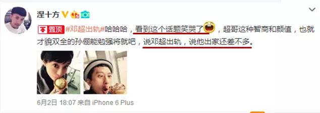 按照以往明星出轨话题的规律,这时候大家本应当开始怀疑猜测出轨的真相,不过话题里的所有网友都在调侃这个话题,总之大家坚信,邓超绝对值得信赖!