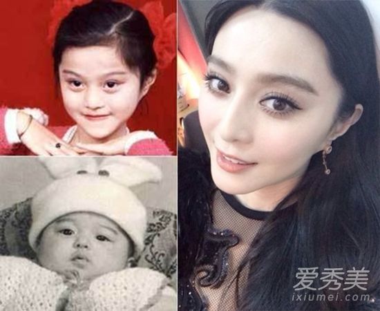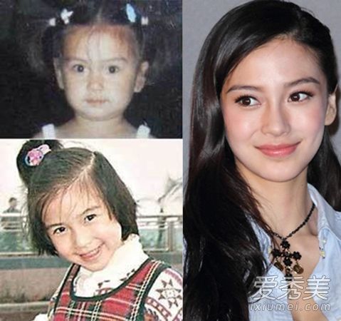 女神从小就这么"妖",不过小时候的瘪嘴巴不如现在好看,看左下角的旧照,大眼睛、小鼻子和小嘴巴,女神颜值天生就这么高。