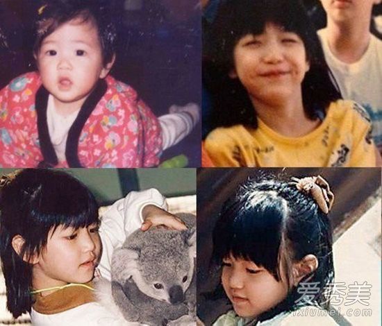 看到右上角的笑容,你就能认出这是谁了吧!原来女神陈妍希小时候眼睛还是挺大的,不过脸型也挺大。