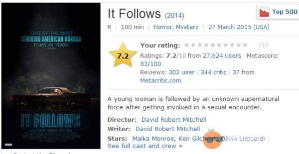 IMDB给出7.2的高分,要知道这在恐怖片领域是相当高的分数。