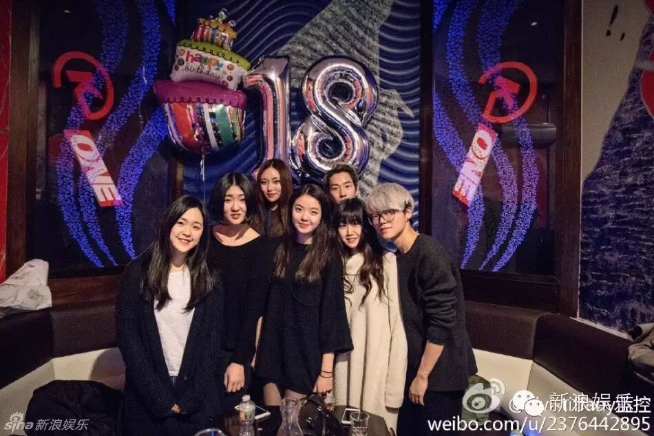 今天她在微博晒出一组和朋友庆祝十八岁生日的照片。