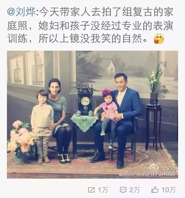 前一阵子影星刘烨和安娜一家的复古全家福照片刷爆朋友圈。