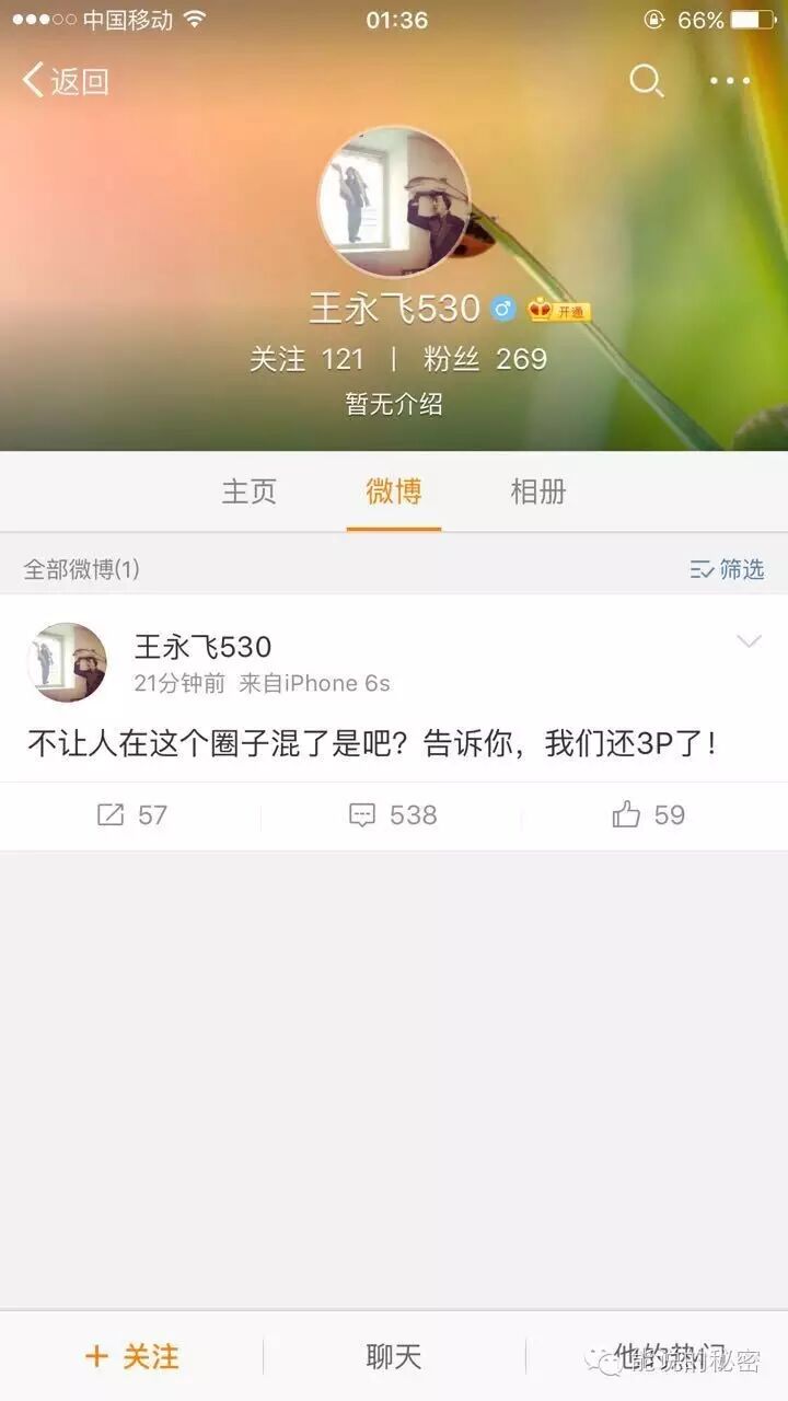 这是微博账号“王永飞530”发出的微博更是爆点十足,扯人眼球,不过最后证实这是网友的恶作剧。