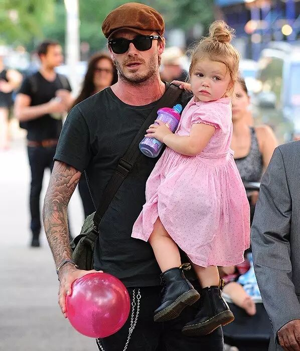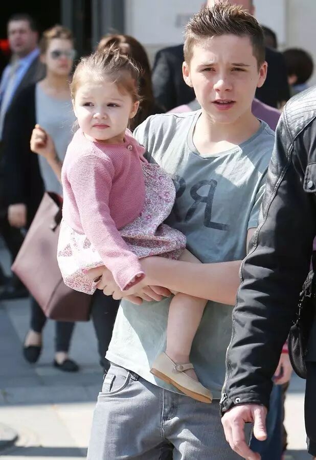 小贝、贝嫂、三哥哥轮流当她的交通工具