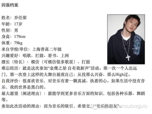 现在那个选秀节目的主页上还有乔任梁的信息。那一年,他17岁。
