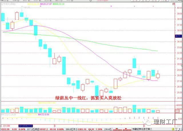 内参口诀十一:绿荫丛中一线红,抓紧买入莫放松。