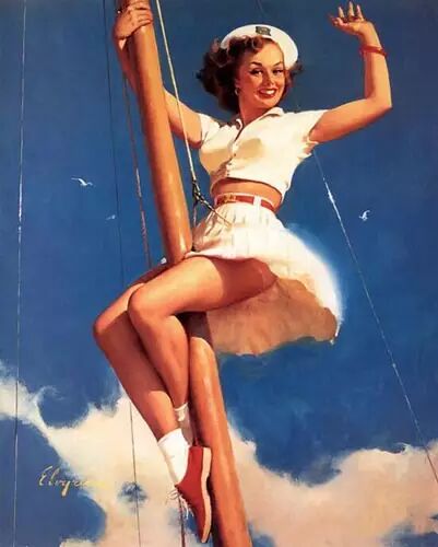 以上这8幅海报是在今年5月14日,美国达拉斯举办的一场遗产拍卖会上出现的,这是插画家吉尔·艾尔夫格兰的作品,创作于二战期间,海报女郎浮夸香艳,估计美国大兵看了都流鼻血了吧!
