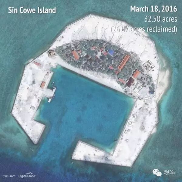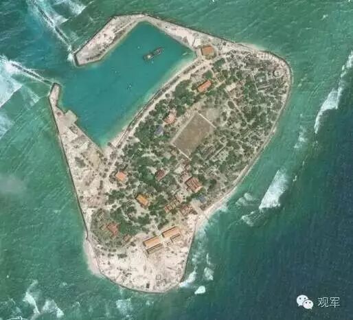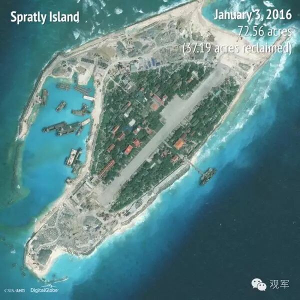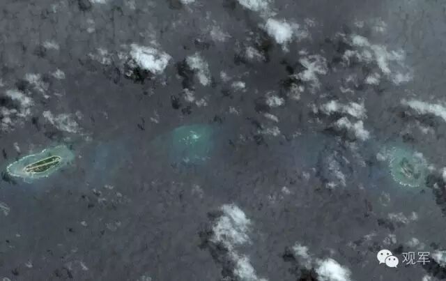2016年7月8日的南沙太平岛、中洲礁(我国台湾当局控制)、敦谦沙洲(越南非法占据)(从左至右)