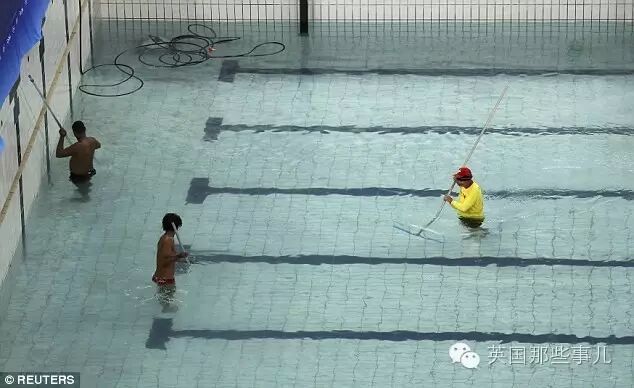 在花样游泳运动员抱怨花游池太绿,他们比赛时都看不清互相之后,里约官方终于重新放水清理了大池...