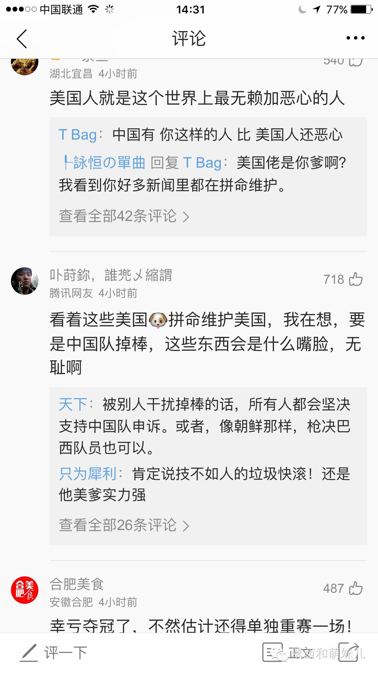 但我不太能理解的是,之后的很多人把中国队未能晋级的遗憾完全归罪了美国队。对美国队的金牌各种嘲讽,谩骂。还有超级荒谬者说巴西就是美国的孙子,对美国言听计从。里约的一切都是世界打中国。说奥运成了政治的比赛。
