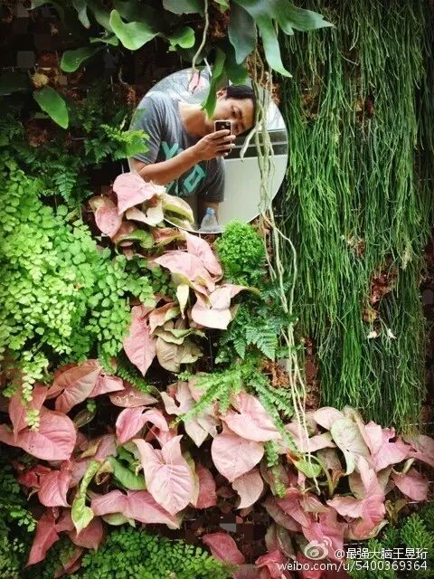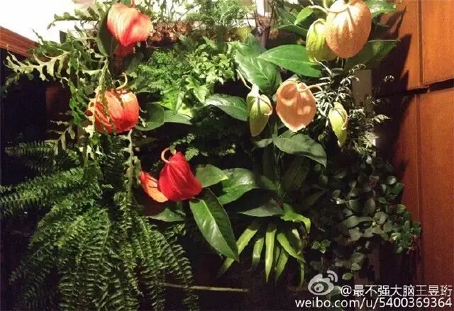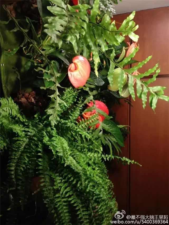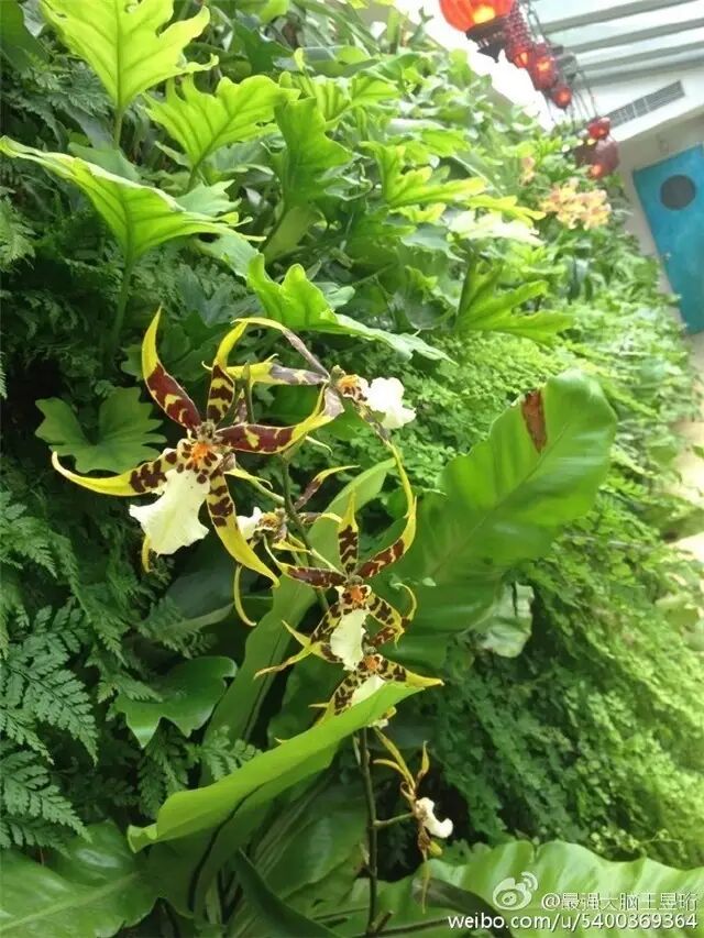 在绿植墙绽放的文心兰。