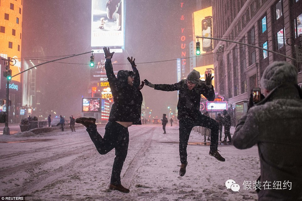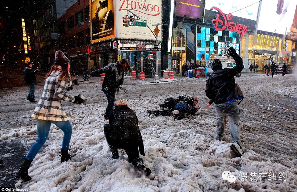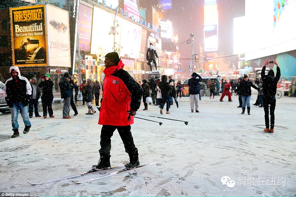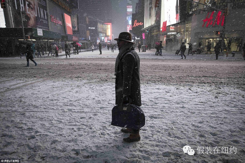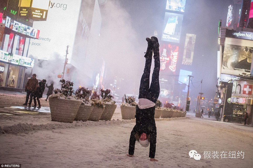 这个人一年四季几乎每天都这副装扮呆在时报广场,头戴牛仔帽,裸体抱着吉他,貌似是在宣传某个安全套品牌。就连这么大的雪都不例外,真是太敬业了。