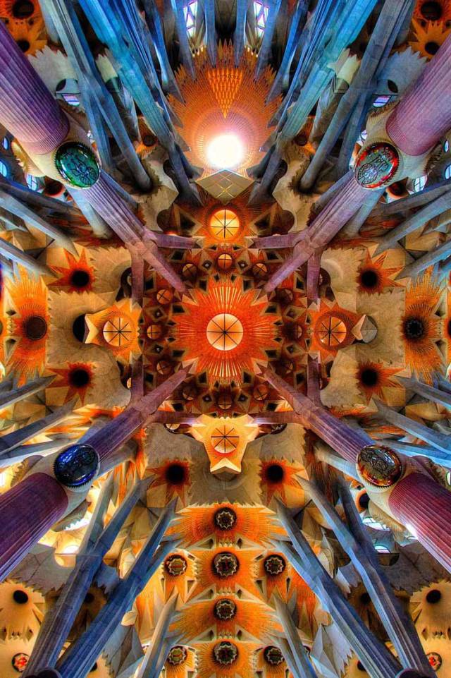 细节:教堂东、西、南侧的“诞生立面”(FacanadelNaixement)、“复活立面”(FacanadelaPassio)、“荣耀立面”(FacanadelaGloria);描述基督降生的“诞生立面”出自高迪之手,连同北面后龛的墙壁于1912年完成;描写耶稣与十二门徒最后晚餐的“复活立面”,线条简洁的巨大雕塑则是约瑟夫·萨巴拉奇斯(JosepM.Subirachs)于1990年完成的作品,耶稣赴场一景中的士兵形象,是参考米拉之家屋顶的雕塑所创。