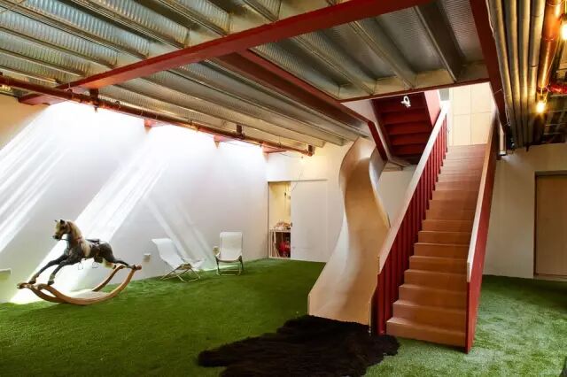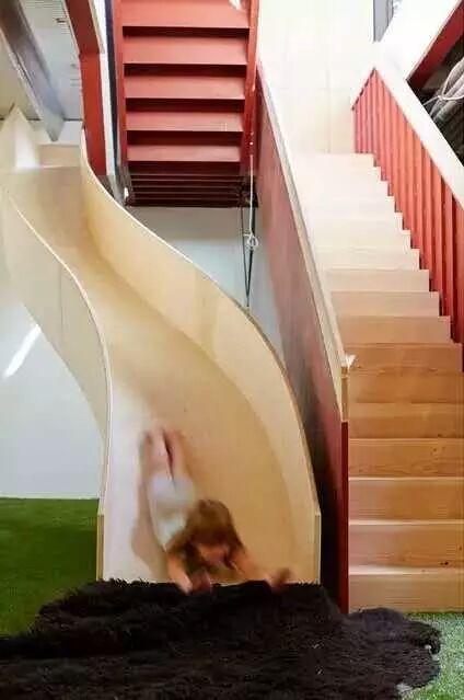 滑梯从楼上直下,